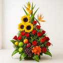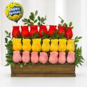 Si de conquistar se trata, envía rosas rojas, qué mejor que este hermoso arreglo floral elaborado sobre una base de madera, está compuesto de 24 rosas rojas, lirios y follajes verdes. El diseño incluye una caja de chocolates Ferrero Rocher por 8 unidades y un globo metalizado “Te Amo”. Sugerimos que acompañes este diseño con chocolates, peluches, globos o vinos para hacer aún más especial tu detalle, en el siguiente paso de la compra puedes agregar a tu orden estos productos si lo deseas.